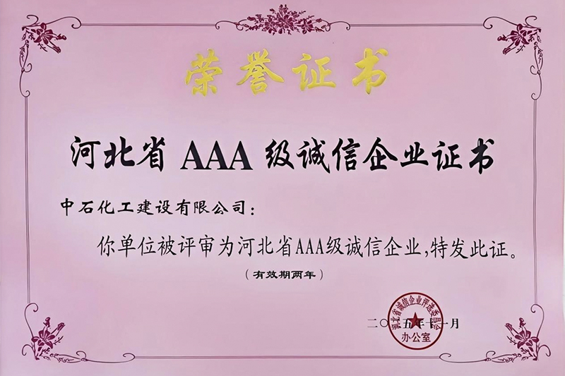 公司再獲“河北省AAA級誠信企業”